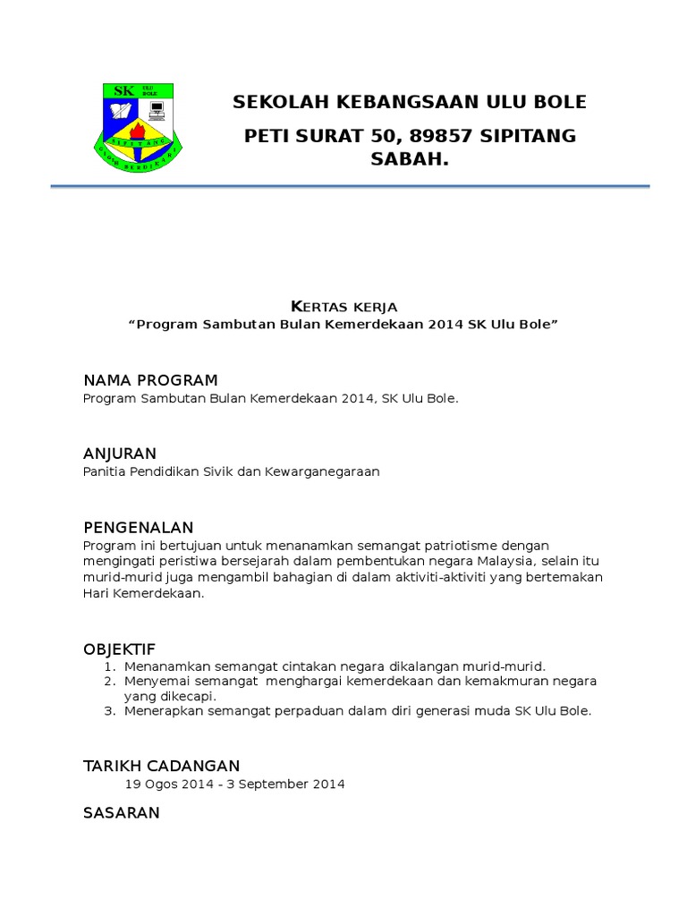 Kertas Kerja Sambutan Bulan Kemerdekaan Cover Sukan Prestasi Tinggi Sekolah Memanah Nyong75 Wordpress Com1manual Latihan Memanahkandunganbil Latar Belakang Kan Math Math Equations Person. Kerja bulan kemerdekaan contoh kertas kerja contoh bagi membantu mereka yang ingin membuat kertas kerja di sini saya perturunkan satu contoh kertas kerja yang telah saya buat dan juga telah diluluskan peruntukannya seperti yang diminta pada muka surat pertama kita perlu membuat cover page seperti di. Kertas kerja bulan kemerdekaan 3.
